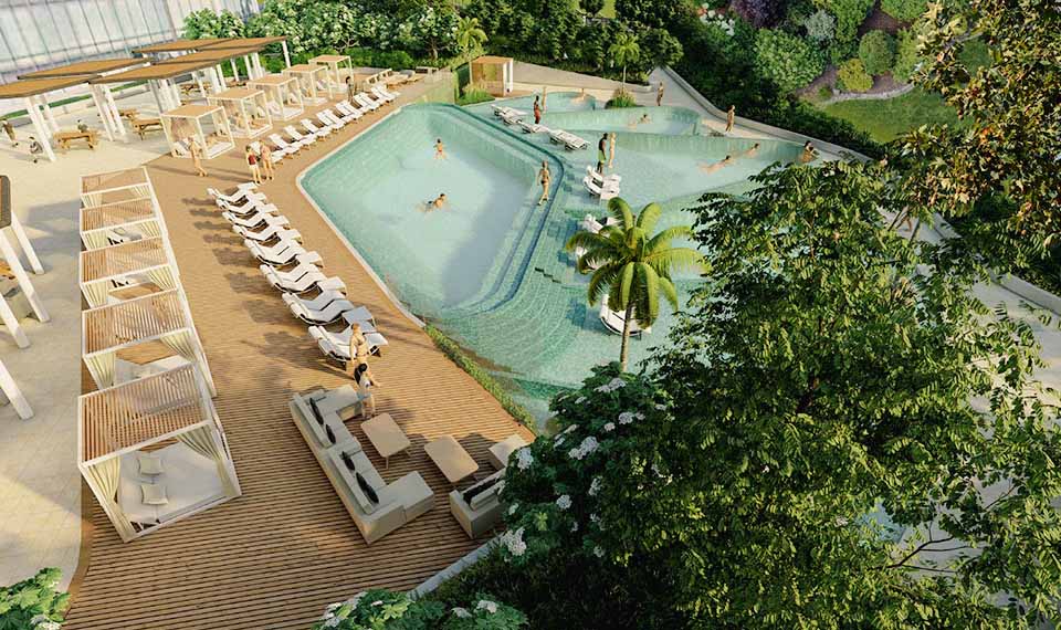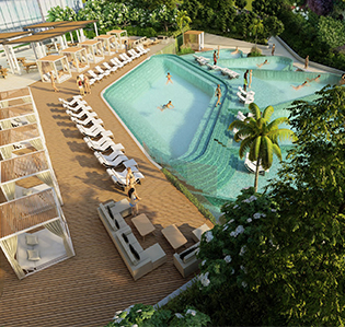 There's a beautiful pool to dip in, for some refreshment.Even sun loungers, Daybeds, and Cabanas are placed for the comfort of the residents. For families with kids, there's a dedicated kid's play area for them to learn, grow, and have fun. There's an observation deck too, so you can view the life around you, and soak in its freshness.