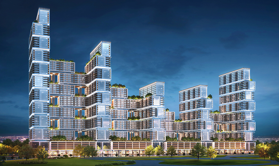 Sobha One spreads its tapestry over five interlinked towers. Rising from 30 stories tall and hitting a crescendo of 65 stories, it’s one note after another that sings in chorus with the skyline.
