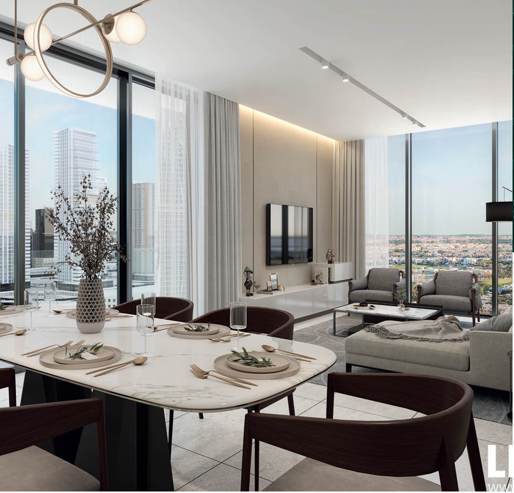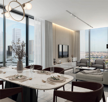 Verde tower by Sobha features a striking architectural design with a sleek, modern façade, and offers 1, 2, and 3-bedroom apartments. The interiors are designed to be spacious and elegant, with high-quality finishes and fixtures, and large balconies that offer panoramic views of the surrounding areas.